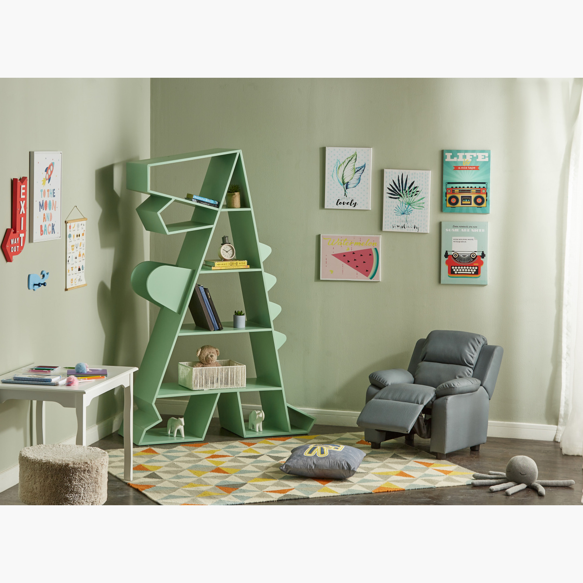 Dinozor kitaplığımızın raf kısımları olabildiğince geniş tutulmaya gayret gösterilmiştir bu sayede tasarım olarak dinozorlara benzerlik göstermesine dikkat edilirken ayrıca kullanışlı olmasına da özel gösterilmiştir. Özellikle Dinozor Kitaplık tasarlanırken ağız kısmından kuyruk kısmına kadar olan her alanın kullanılabilir olmasına özel gösterilmiştir.
