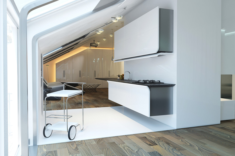 Çatı katını güzel bir yatak odası veya çalışma odası yapmak yerine günün her dakikasını geçirdiğiniz modern bir mutfak yapmakta mantıklı gibi görünüyor özellikle günün tüm ışığını alan bir çatı katınız varsa bence bu fırsatı hiç kaçırmayın.