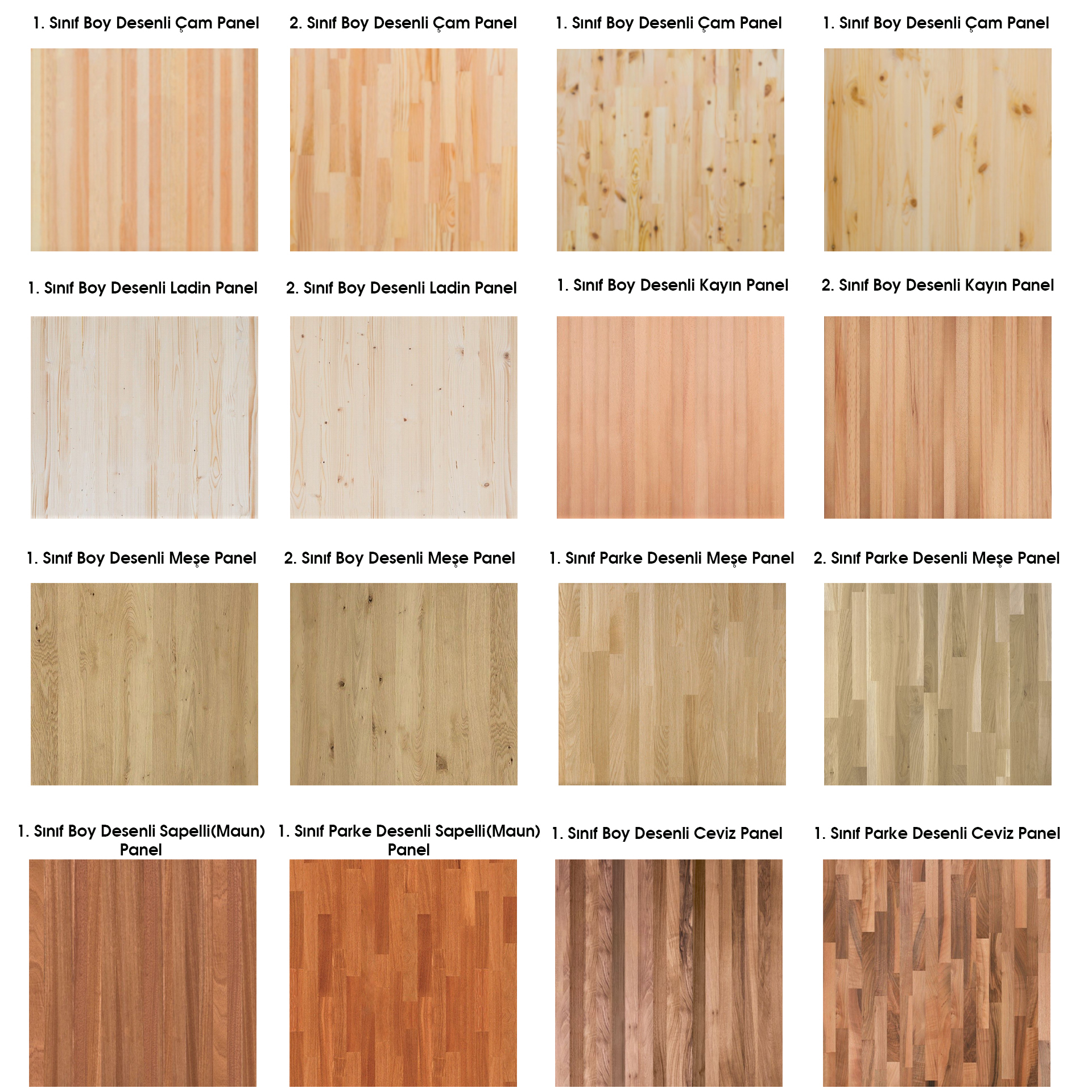 Masif panellerde sınıf farkları vardır çünkü her ağaç temiz bir görüntüye sahip değildir kimisinde budak, ardak ve çürükler vardır kimisi ağacın doğal harelerinden oluşmaktadır bu nedenle masif paneller bir araya getirilirken ağacın ne kadar budaksız ve çürük olmayan yerleri varsa bir araya getirilir ve ağacın güzel parçalarıyla daha iyi görünümlü masif paneller ortaya çıkar buda şu demek oluyor 1. sınıf masif panellerde genellikle budak ve çürük gibi delikli yüzey bulunmamaktadır aksine temiz ve harelerden oluşan yüzeyli masif panel oluşmaktadır. 2. sınıf ve 3. sınıf masif panellerde sırasıyla budaklar ve ardaklar daha fazla çoğalmaktadır bu yüzden fiyatları da kalitesi doğrultusunda düşmektedir. Örnek olarak aşağıda sizlere ürünlerimizin görsellerini paylaşacağız oradan tüm kaliteleri görebilirsiniz.